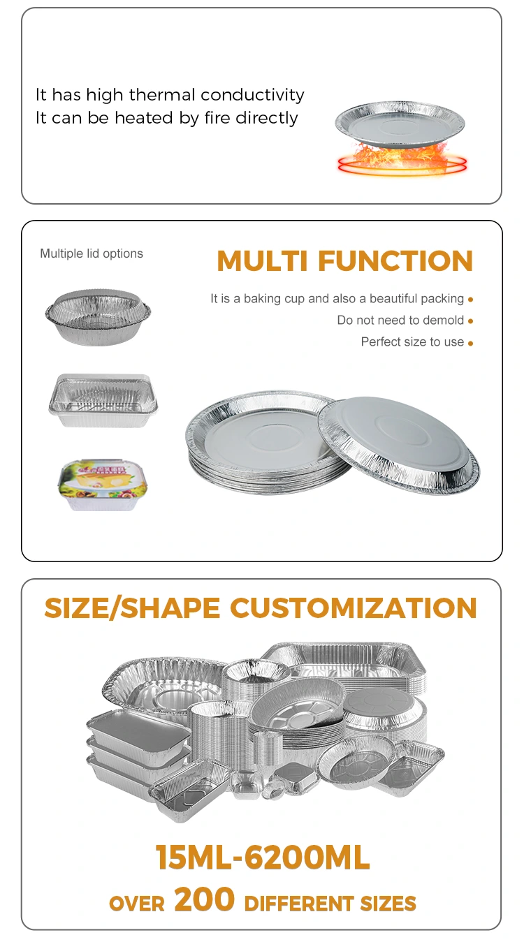 Familia coetus in familia coetus, in X inch pizza Pan Silver Aluminium Foil Continens est dubius est indispensabilis adiutor. Potest adhiberi principalis acetabula talis assum pullum et Stews, aut utatibus utensilibus tenere RELIQUUM cibus, quod commodum et velox ad redigendum onus purgatio post cibum. Praeterea, debitum ad suum leve et facilis-ut-portare characteres, idealis est velit picnics.