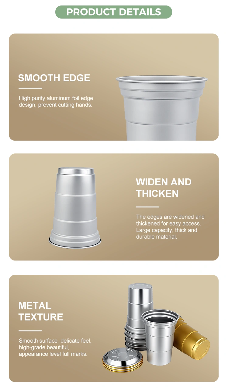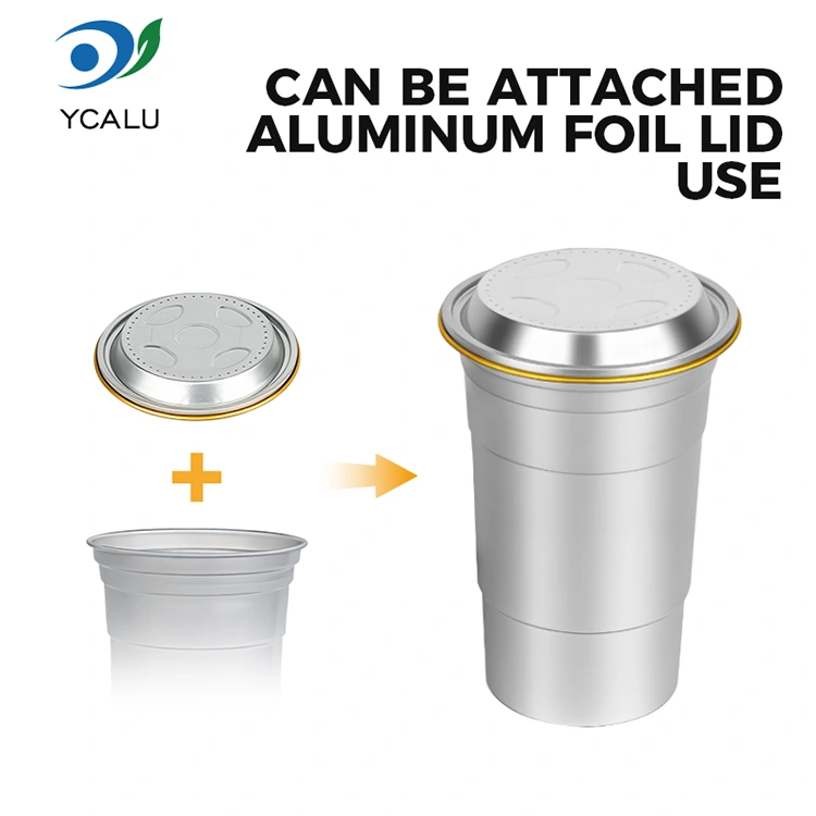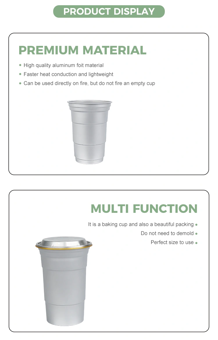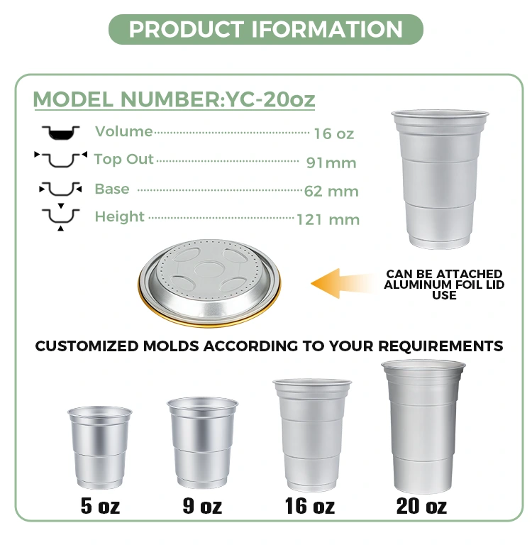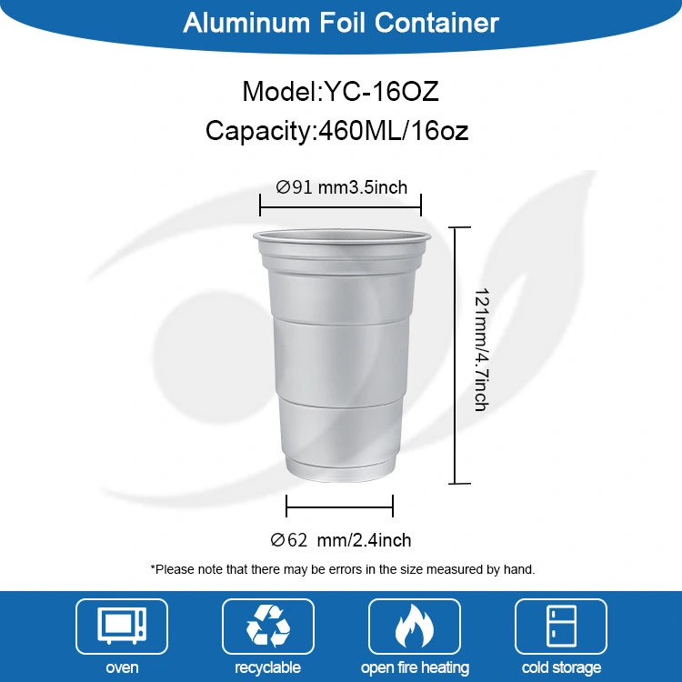 Yunchu est princeps Sinarum 16oz Disposable consuetudo aluminium claua poculi poculi fabricator. Hoc 16oz Disposable Consuetudo Aluminium Foil Calicem bibens est 460 millilitra aluminium ffoyle calix aptus pro norma potiones ut capulus et cervisia. Comprehendit normatum consilium et maxime in usoribus mercatoriis iaculis, sicut tabernae et doli mali, crebris customizationis necessitatibus. Dum efficientem calorem conductionem et signationem fundamentalem praestans, haec 16oz Disposable Custom Recyclable Aluminium Foil Calicem bibe etiam maiorem emphasin ponit in operas vivas et flexibiles notam visualium customizationem.