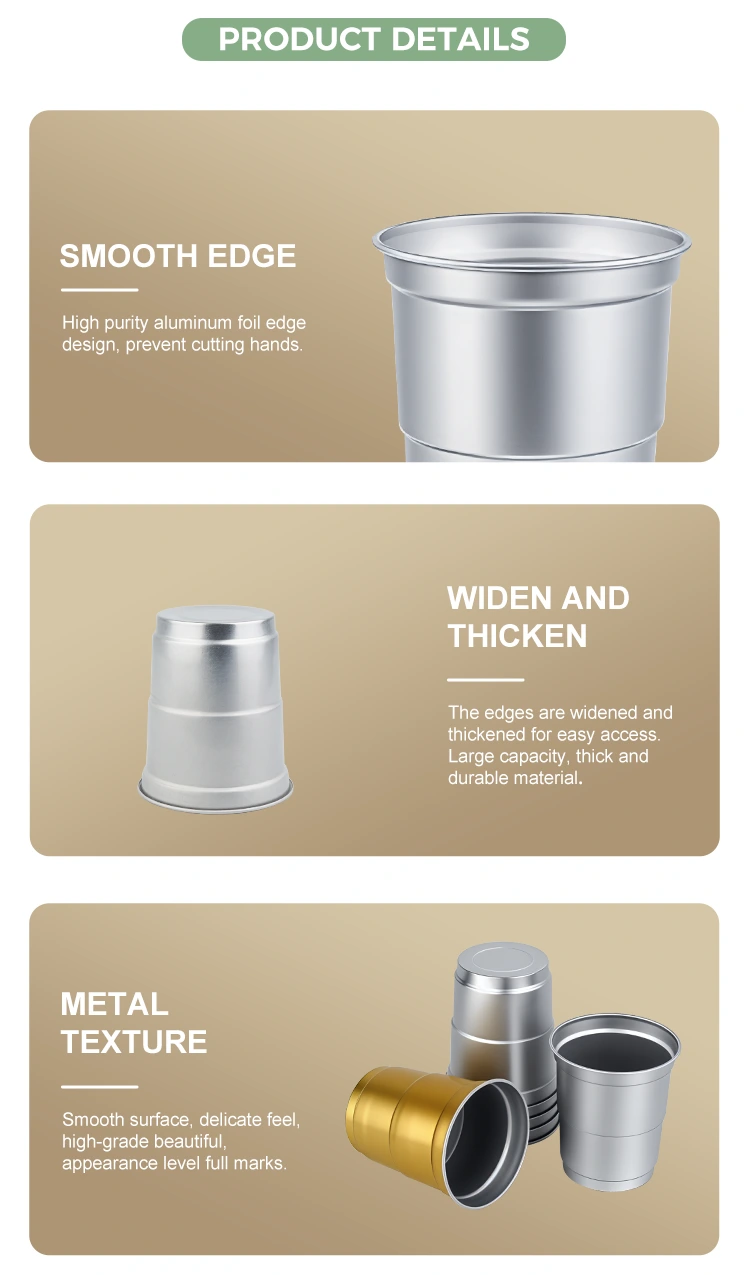 "Procuratores" et missiones scrutantur: thermopolia, lac theca tabernae, ac sucus tabernae ad parvas potiones et exempla adhibenda sunt. Exquisitas facultatis metallicae nitorem texturae notam auget; Tabernae glacies cremor et mensa tabernae uti possunt sicut secunda mensa mini pocula ad portandum globos glaciales, mousse parvas portiones, etc. Aluminium materia melius conservare potest humilis temperatus et pluteam vitam gustus extendere. Yunchu Aluminium Foil facultatibus productionis professionalis customizationem notarum LOGOs in corpore poculi sustentare possunt, mercatoribus adiuvandis recognitionem notam confirmant.
