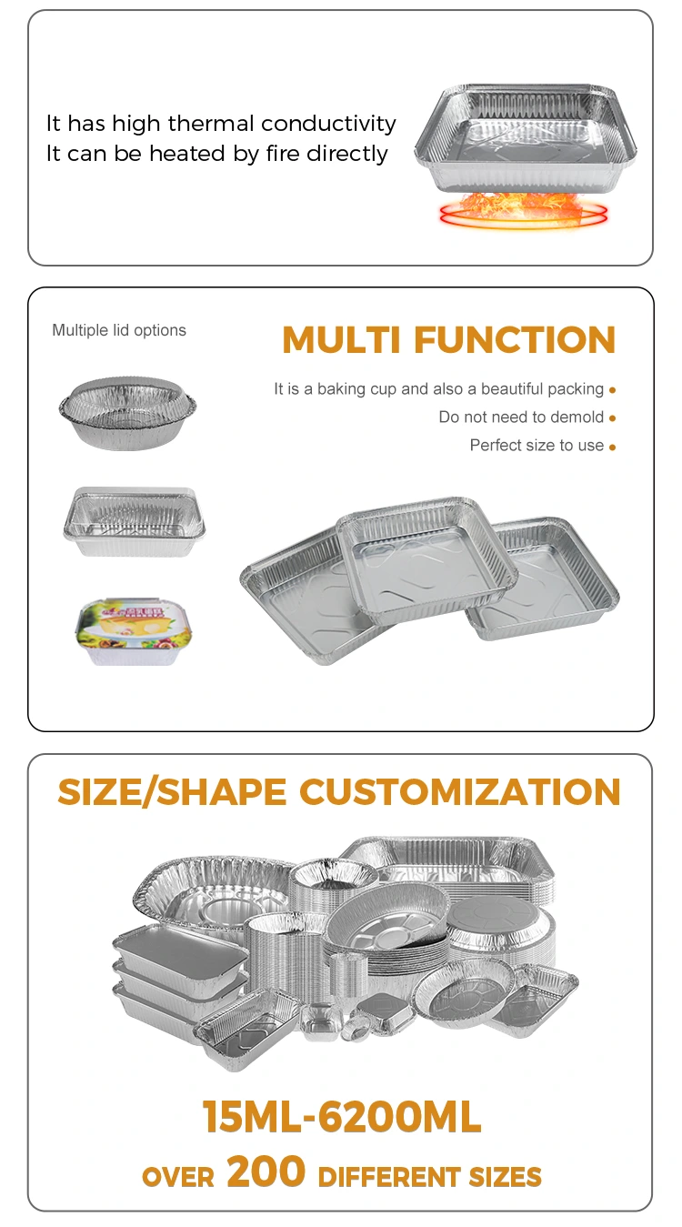 Yunchu aluminium ffoyle elit producit PROMPTU BBQ skewers Saker Aluminium Foil Containers, quae apta metus Takeaway ordines, parva liba in bakeries, familia laborum et popinae. Safe and healthy, food ideas are not limited, kitchen utensils are a good partner to easily cook food, air fryers and other equipment are heat-resistant and oil-proof, easy to bake, outdoor barbecue, temporary bowls are not afraid of fire, when using, food or soup needs to be placed, do not dry without water, household oven, clean and convenient, disposable plate, can be thrown away after use without cleaning, the container is Integrated in corpus et edging consilio cogitatione ne scratching manus. Multiple magnitudinum sunt available pro vobis eligere ad sectam diversis usus missionibus. Si vos have ullus questions vel postulo magis notitia, placere sentire liberum contactus nobis.