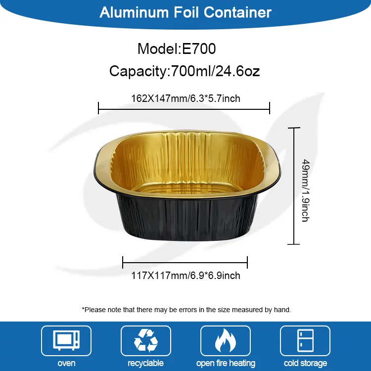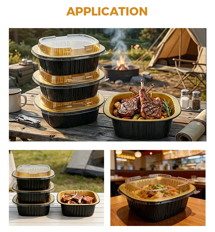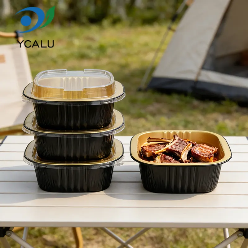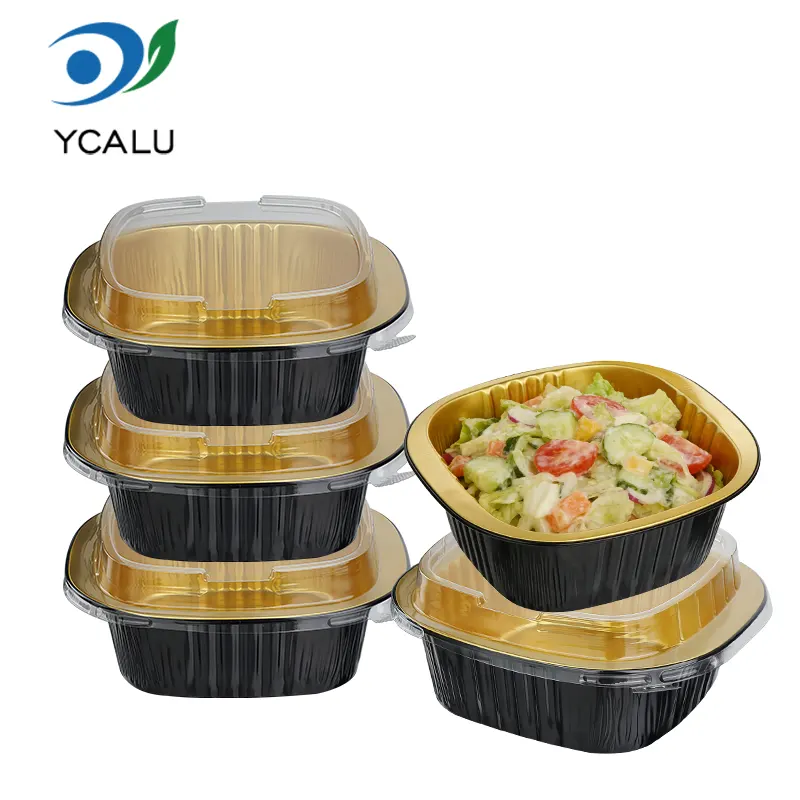 Yunchu Aluminium Foil supplementum capsulae quadratae duplicatae spicae nigrae auri levis muratae aluminii bracteae continens figuram quadratam designat, spatium plenum utendo, angulis rotundatis et laevibus, nullo lappa acuta, et tutior ad utendum; cogitatio duplex auriculae, ergonomica, insulata et anti-calificatio, facile adprehenditur, etsi calidum cibum et pulmenta contineat, facile retineri potest ad vitandum manus urit et incommodum dolorem punctum aluminii ffoyle traditum solvendum. Ex aluminio incrassato ffoyle, textura solida et obdurata, capacitatem validam habet, nec facile deformatur vel laeditur. Cibum habere potest cum sorbitionibus et adipes sine lacus vel in latere problematum lacus, et eius durabilitas longe superior est prandii cistae ordinariae disponibiles.
