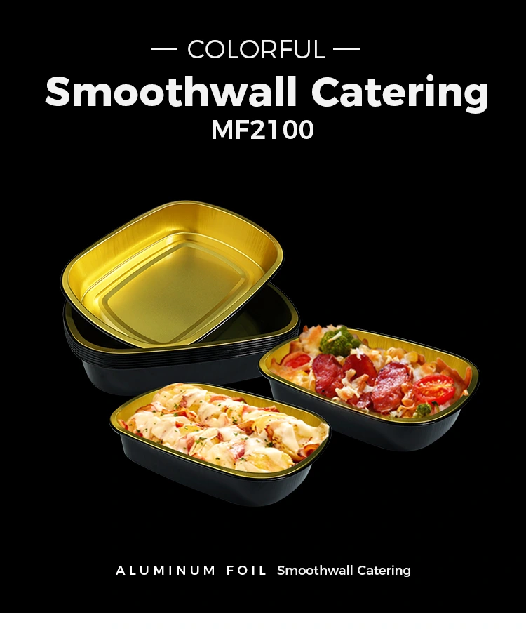 ​Yunchu Aluminum Foil Supplier Disposable black gold catering Rectangular Aluminum Foil Containers is suitable for large-volume catering and takeaway industries, especially suitable for baking, catering chains and self-service chains and other scenarios, the product is made of 8011 food-grade aluminum foil material, the height is low and suitable for some turkey, grilled fish, stew and other foods with many ingredients Ad locum, potest esse cum aluminium ffoyle signantes operculo et pet plene transparent operculo, cum optimum signantes perficientur, summus temperatus resistentia et oleum et Leak praeventionis munus. Est late in variis missionibus ut cibum packaging, calefacit, refrigerationem et takeaway partum. Superficiem induit lucem murum consilio cum plana et lenis speciem, quae est convenient automatic signati calor, signatum film, ita improving packaging efficientiam.