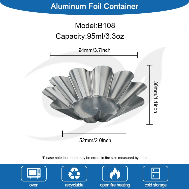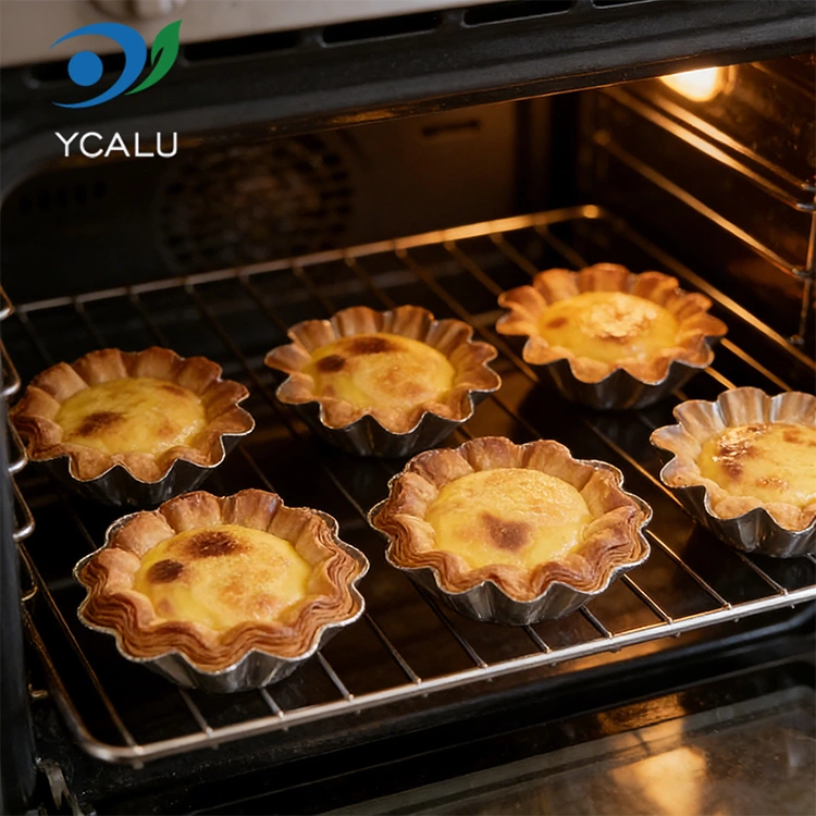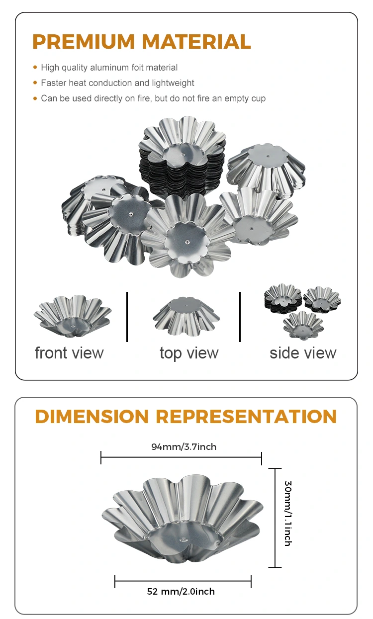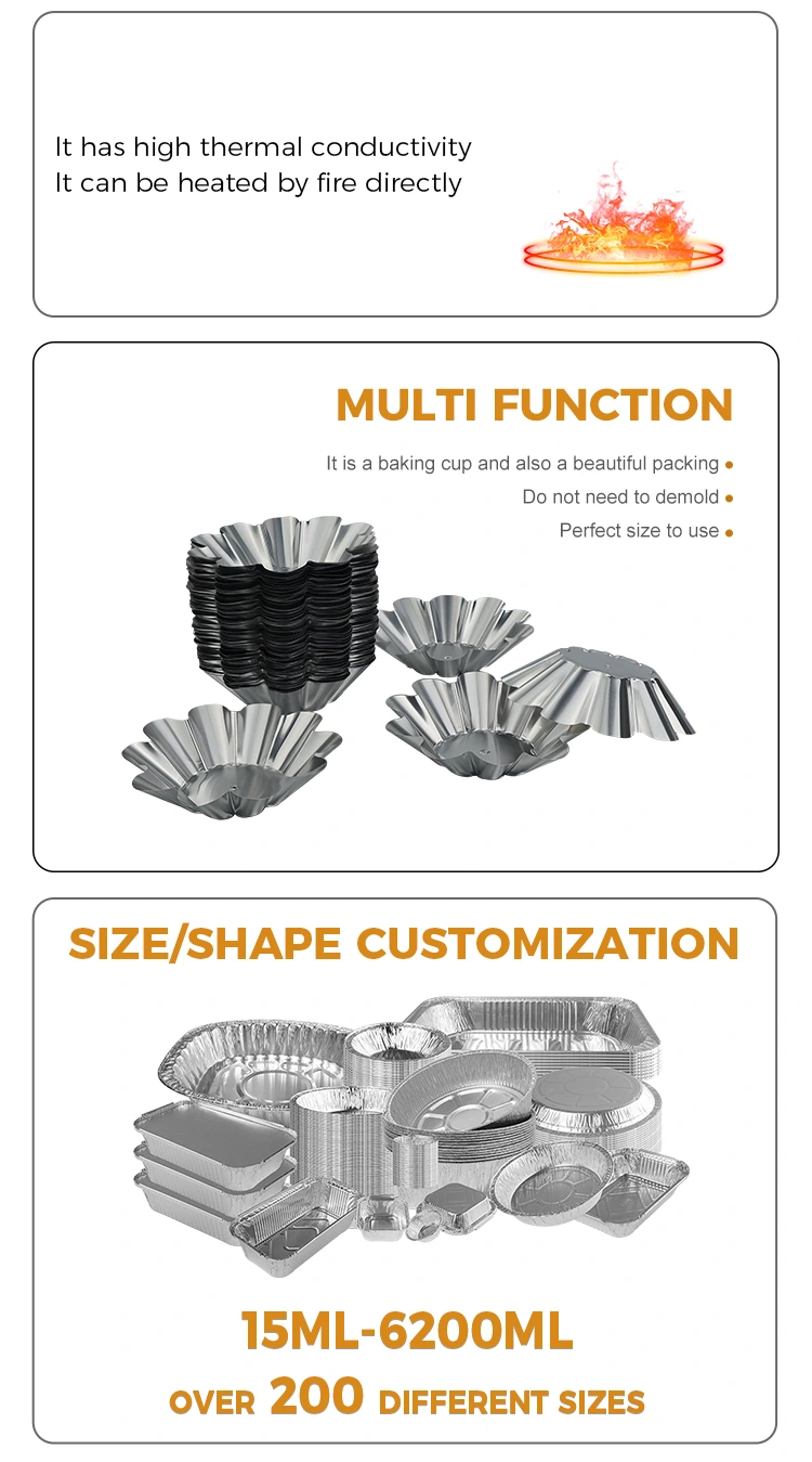 Yunchu Aluminium Foil Supplier Disposable Chrysanthemum Light Ovum Tart Holder Argentum Aluminium Foil Continens Aluminium Foil materiam optimam scelerisque conductivity habet et temperaturas altas et humiles ab -20°C ad 250°C sustinere potest. Stabilem structuram hypotheticam habet et in calidis temperaturis coctus dissolvit vel marcescit. Calorem cito perducere potest et consilium liberum habet. Post pistoria protinus se abponi potest, dicens vale ad taedium purgandum opus et tempus et salva pubis.