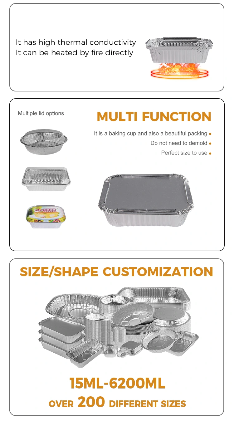 Yunchu Aluminium Foil Supplier scriptor PROMPTU FFIL Box barbecue Silver Aluminium Foil Containers fabricari cum summus qualis 8011-0 cibum gradu argentum materiale. Hoc productum est disposito pro varietate ciborum ut grilling, pistoria, aeris fryers, et pre-fecit acetabula, praesertim illis qui frui velit barbecuas et familiam.
