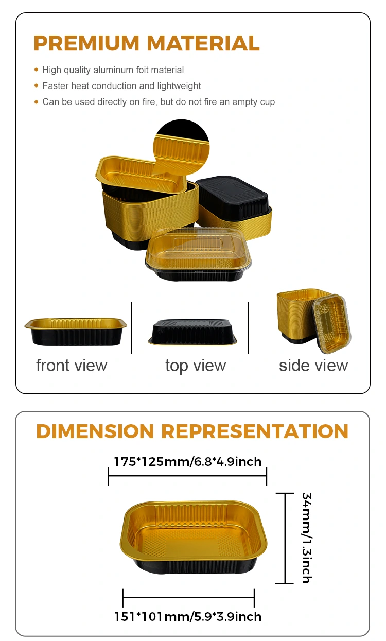 Yunchu aluminium ffoyle elit disponibile rectangulum obsonationem sume-ex alumine ffoyle levi-munito receptaculo multo rarior est in eo quod tam practicus et environmentally- amica est. Aluminium ffoyle materia indefinite REDIVIVUS potest, signanter reducens emissiones gas CONSERVATORIUM. Facile comprimi potest post usum, facile exsistere et redivivus, nec "contaminationem albam" facere sicut prandiorum plasticorum. Non solum ad hodiernam inclinationem tutelae environmental accommodatur, sed etiam negotia adiuvat bonam imaginem operationum viridium constituere. Habet autem spissam spissam et plenam spissitudinem. Non facile est rugare aut frangere pressos, nec onerata gravia debilitare. Etiamsi plena pixide pulmenti calidi repleta sit, de damno lacusque pulmenti curandum non est. Pretium/faciendi ratio longe melior est quam ordinaria pixides prandii plastici et pixides bracteae aluminii tenues.