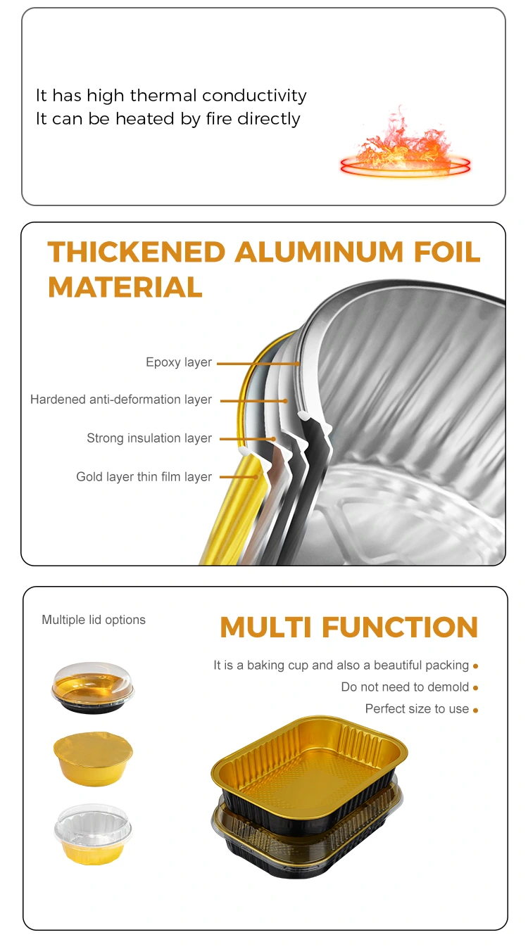 Yunchu aluminium ffoyle elit disponibile rectangula obsonatio sumo-e levi-sacramenta aluminii foil-munita fiunt cibi gradus. Stricte discursum sunt et texit nec habent odorem proprium. Tota productio processus in officina libera et pulvere libera sine additivis noxiis perficitur. Oryza, cibus, pulmentum, etc etiam in directum contactum esse potest. Hoc aluminium ffoyle continens US FD A certificatione cibi gradus transiit, signa stricte sequentia FDA. Post professionalem probationem, moles aluminii migrationis longe minor est quam limites definitus et probatio ad vexillum. Formal test fama nacti sumus. Non solum in obsonationibus domesticis adhiberi potest, sed etiam requisitis ad transmarinas exportandos plene occurrit. Duplex fideiussor, utrum catena ieiunium ciborum, culinae privatae, an transversim limitis mercatorum take out, adhibeatur Certus est, et extremam temperiem ab -20°C ad 250°C differentias facile sustinere potest. Ex refrigeratione refrigerandi et congelatio ad proin calefactionem, clibanum coquendum, et etiam flammae aperta calefactio ( instrumenta velit calefactionis requirit), potest ad sarcinas calidae pulmenti et ad acetabula calida pro takeout adhiberi. Etiamsi diu tepefactum fuerit, continens non emolliet neque deformet, neque dissolvet vapores noxios neque faciet; Post cibum sumentes, non necesse est ut receptaculum mutare, sed protinus in calefactionem proin clibanum ponere. Quin etiam calorem aequaliter perducit, ne exustus locus aut in calefactione capiatur cibus. Cibis saporem maxime retinere potest. Utrum coctum oryzae, prostibulum vel barbecue vel semi-perfectum coctum sit, ad sarcinas aptum est.