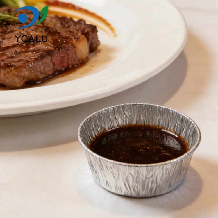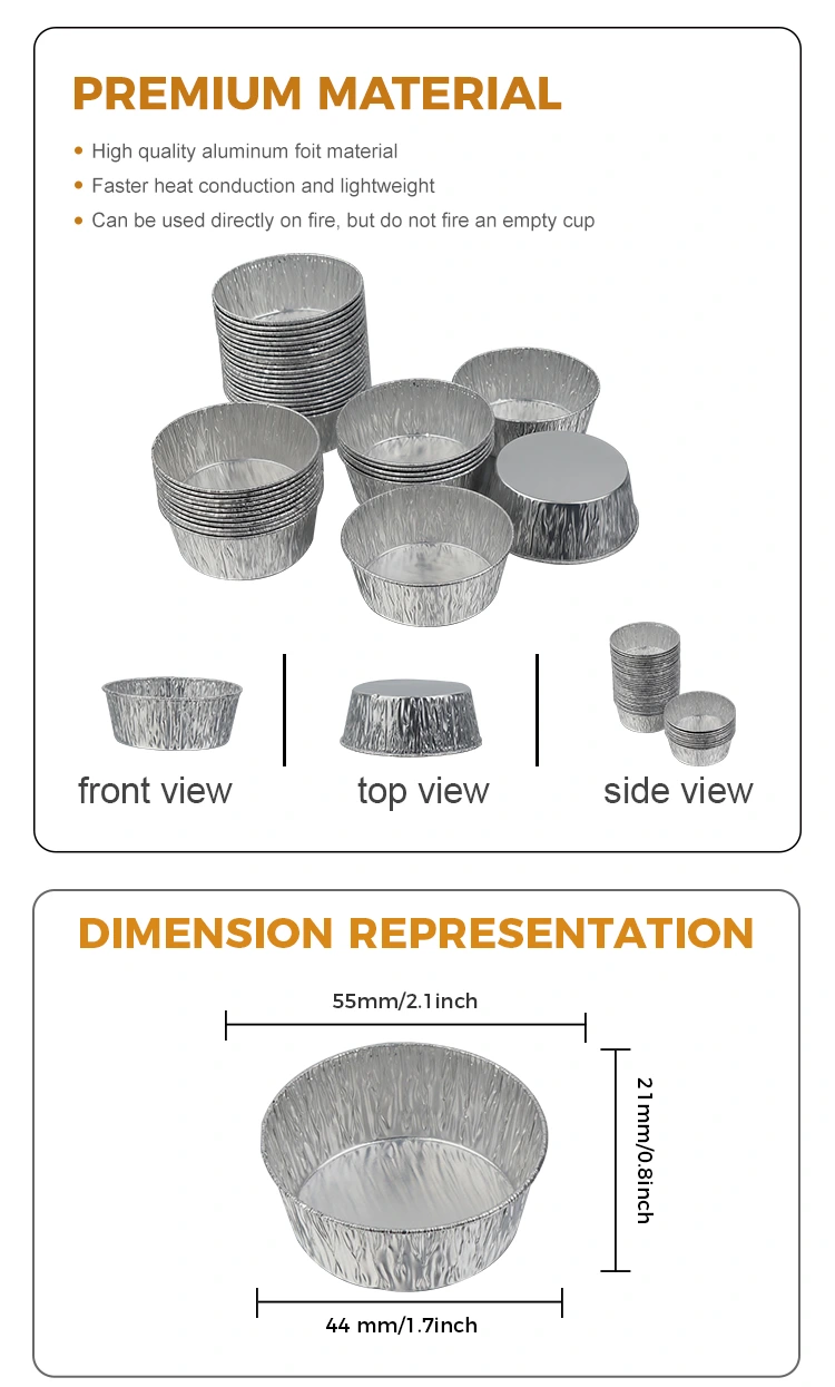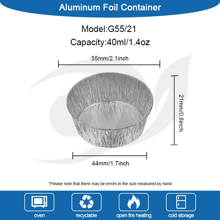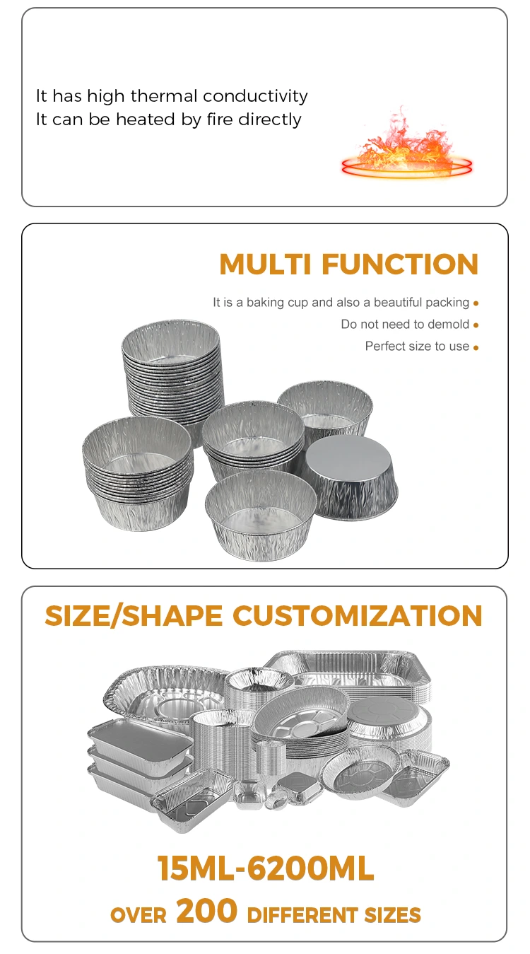 Yunchu Aluminium Foil Supplementum Argentum rotundum intinctio aeris tincta aluminium bracteolae argenteum receptaculum fit cibi-gradus incrassatum aluminium ffoyle. Secura est, non habet odorem, nec habet perniciem. Potest directe contingere omnes materias immersionum. Hoc parvum aluminium bracteolae receptaculum reclinare potest ad spatium conservandum, non deforme, et non fatiscit. Foilum argenteum aluminium uniformem textam habet et conductionem scelerisque praestantem. Adhiberi potest in popinae, casuum, collectionum familiarum, etc. Adhibetur cum laborum in frictoribus aeris, etc. Etiamsi liquamina crassa et oleum tingens condimenta contineat, non fatiscat. Tabularium et coquinam utensilia munda et luculentam servat. Praesentatio claui est simplex et pulchra in variis scaenae. Argentum species variis laminis cenae aequari potest.