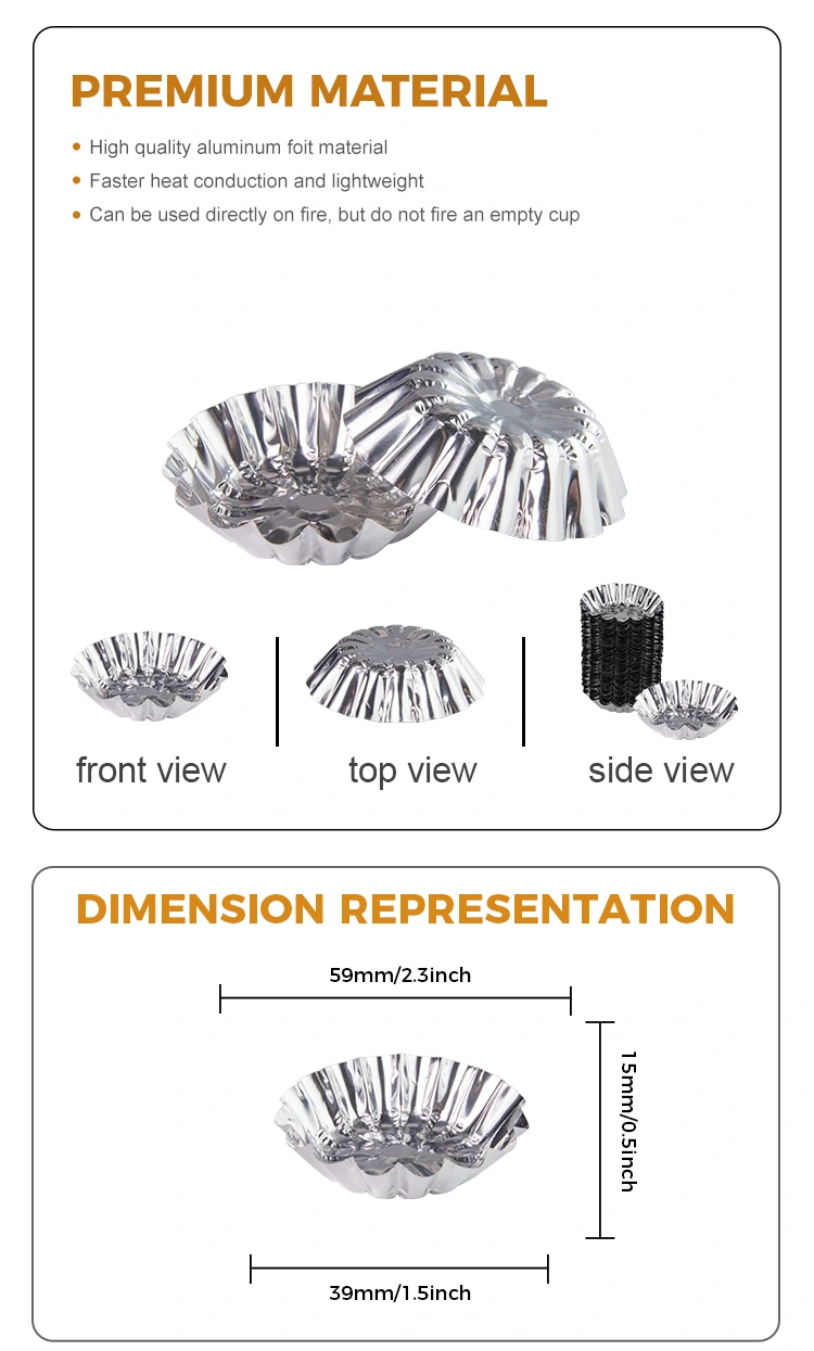 Yunchu aluminum foil supplier's Egg tarts are baked in an air fryer Silver Aluminum Foil Food Container, non-slip cup body, anti-slip pattern of the cup body, increase friction, prevent slipping, curled cup mouth, rounded curled cup mouth design does not hurt hands, multiple large capacity design, one-time use, no need to clean laboriously, wide range of uses, can be used for baked egg tarts, cakes, Ovi vitellus crisps, patera panes et aliis delictis. Yunchu Transierunt German ERP certification, in EU SGS Certification et ISO9001 Quality Management System Certification. Nos utimur sanus, environmentally amica cibum-gradus materiae ut ad salutem et non-toxicity nostrae products. Hae materiae non tantum renewable sed etiam environmentally amica, reflectendo nostris restinguibus requisitis cibum salus et commitment ad sectans summus qualitas signa nostra altiore products.
