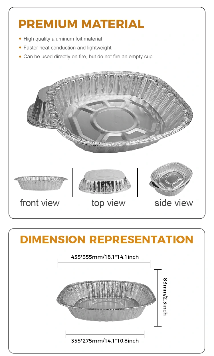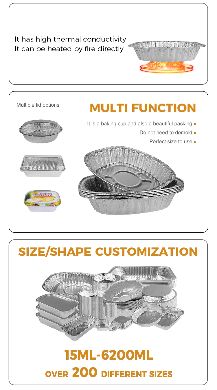 Yunchu aluminium ffoyle amet scriptor magna facultatem rhoncus pullum Pullum Silver Silver Aluminium Foil Containers facile in apparatu ut magna furnorum, steamers, aut freezers. Pondus productum moderari potest portare pondus variis items et figura et structuram facile Stack eleganter efficaciter salutare translationem spatium. Productum est de lumine murum technology, cum lenis et servetur superficies, quae commodius ad magnum supermarkets ad label et scan codes.