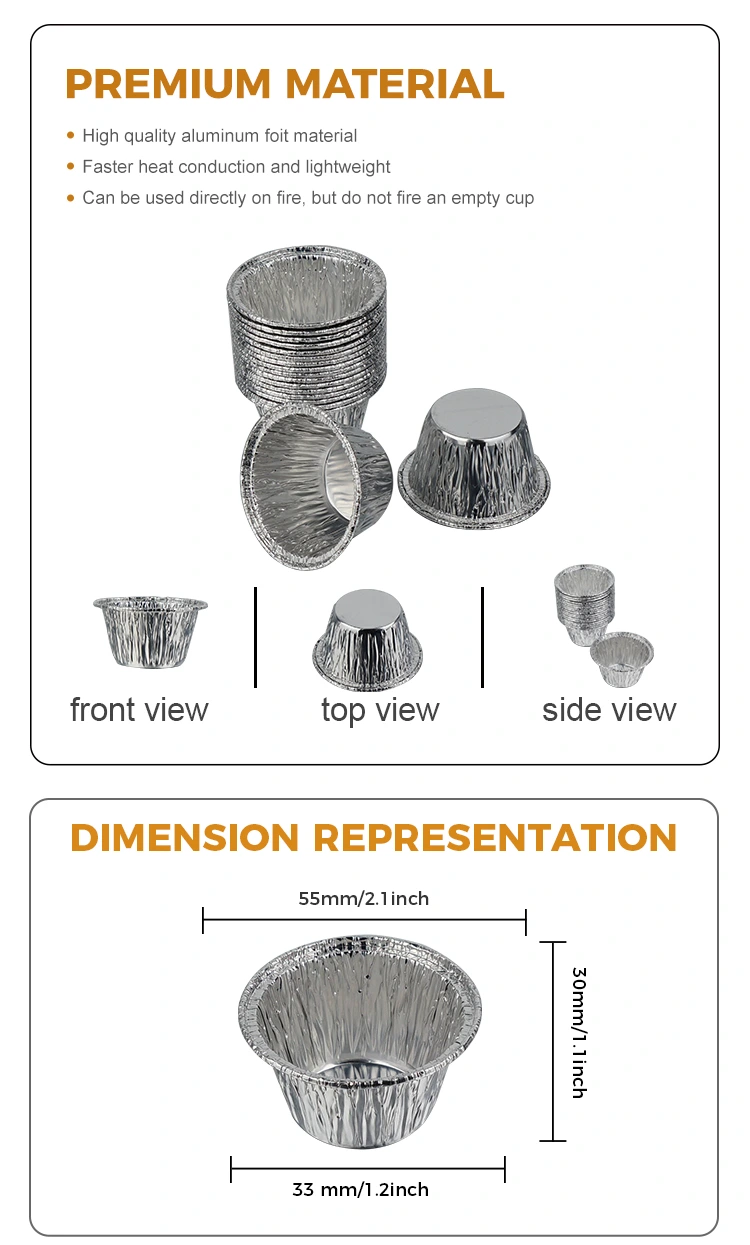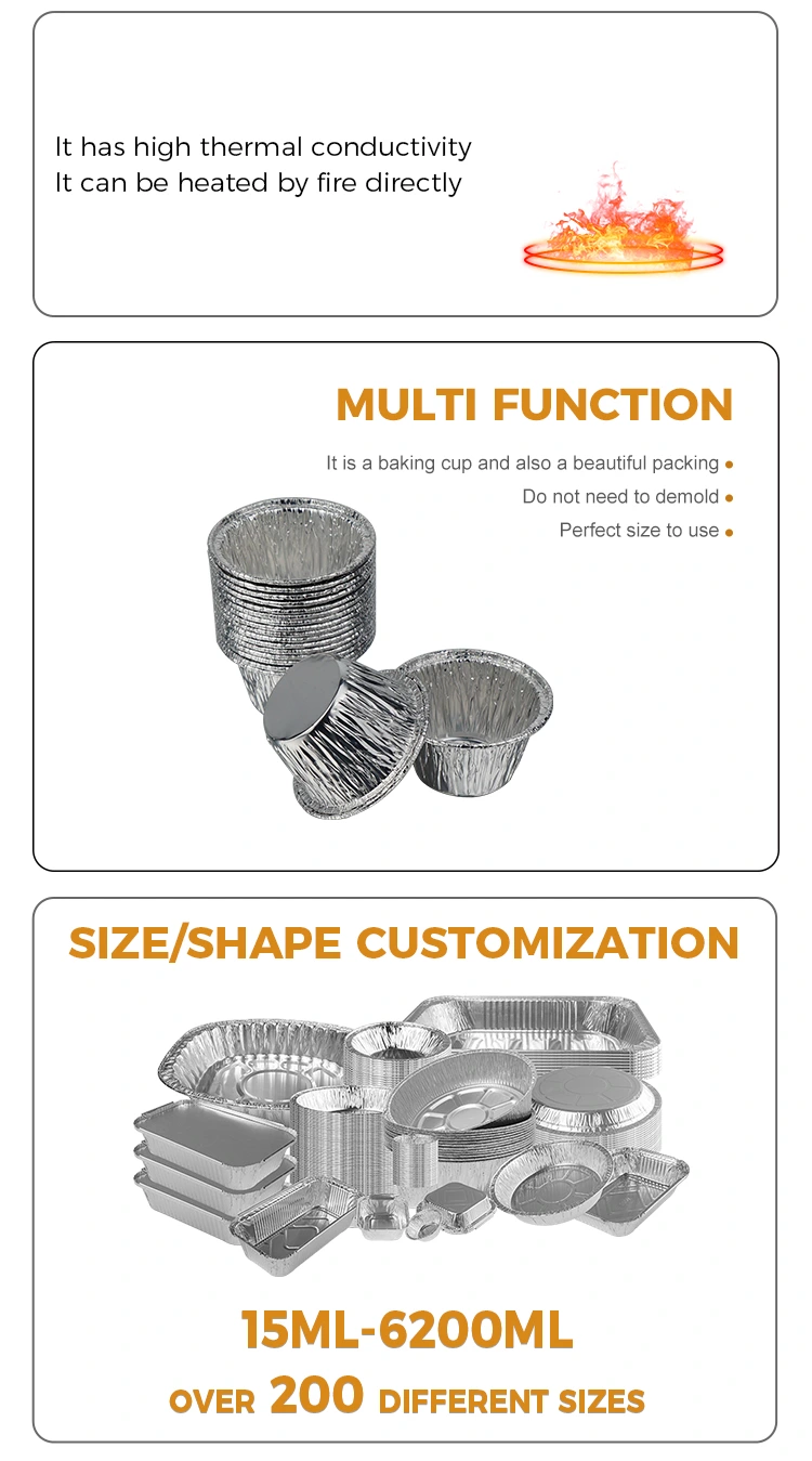 Yunchu Aluminium Foil Fabricantis unum tempus parvum rotundum placentae aeris fryer argenteum aluminium ffoyle continens utitur 8011-O cibus-gradus aluminii ffoyle, qui transivit US FDA cibum contactum salutis certificationis et consentit cum EU SGS cibum contactum materialium salutis signa. Post professionalem probationem, odorem non habet nec residua nociva. Omnes cibi genera directe contingere potest. Non facile est deformare vel frangere. Valet effluo-probatio et anti-baculus. Potest directe tenere liquida ingredientia ut placentam arietem, botulam liquidam, condimentum, etc. Exterior involutus in ore consilium est anti-scadere, periculum scalpendi manus minuere. Temperatus resistentia operit -40℃ ad 220℃, et aptari potest frictoribus aeriis, furnis, steamers et proin clibanis (caloris medii-low). Potest directe in aerem collocari ad coquendum mini placentas et ova tarts, et etiam adhiberi potest ad medicamenta congelata immediate post tabidaque calefacienda, occurrens varietates coquendi et coquendi necessitates.