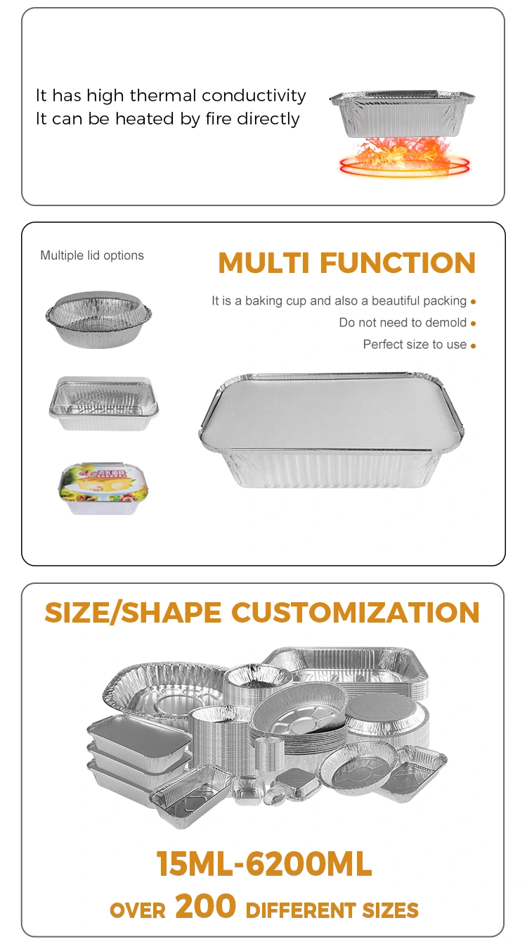 Yunchu Aluminium Foil Suspendisse non solum praebet rectangulum Aeris Fryer Silver Silver Aluminium Foil Containerss, sed etiam launches varietate alia packaging products ad occursum diversis forum necessitates. Exempli gratia, etiam offerunt per argentum aluminium ffoyle continentia quae vicit foro cum unique per consilium modern tactus. In addition, yunchu amet habent etiam launched seriem aluminium ffoyle continentia in diversis magnitudinum et figuras ad sectam variis catering missionibus et personalized necessitates.