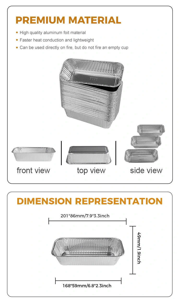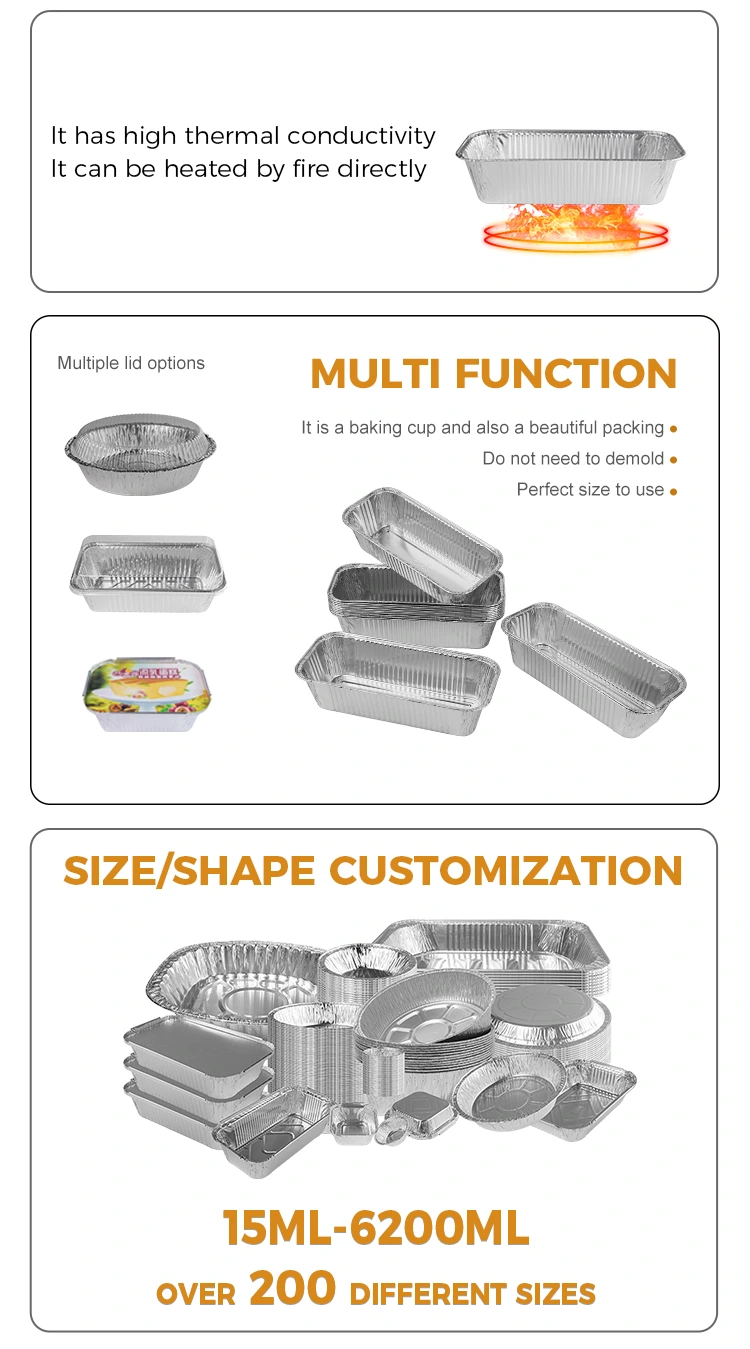 In MMCCCXXV rectangular Aeris Fryer Takeaway Silver Foil Continens providit per yunchu aluminium ffoyle amet est apta varietate, utrum velit barbecue vel familiam congregat. Mercatoribus potest Customize exemplaria et print eos secundum suum necessitates, faciens haec vasis a unique choice pro takeaway packaging, quod sustinet aperta flamma calefacit et oleum lucerna calefaciendo, et non inhaero in cibus, ut parturit et non parturit in part. Potest adhiberi statim cum in aere fryer et concava et convexa consilio ad imo crescit frictio et prohibet laborem. Et stiffeners in lateribus augendae ad sanniness ex productum, dum in alvum consilio ensurs fovere apta in operculo efficaciter densis in temperatus cibum.