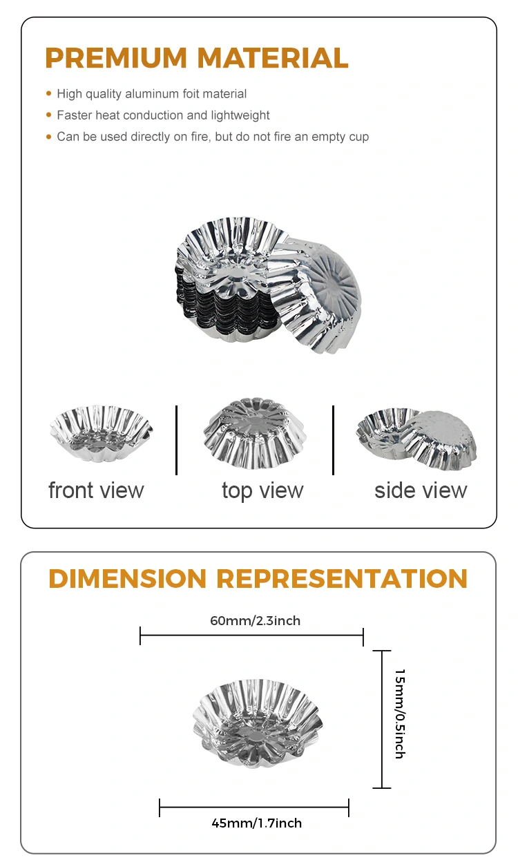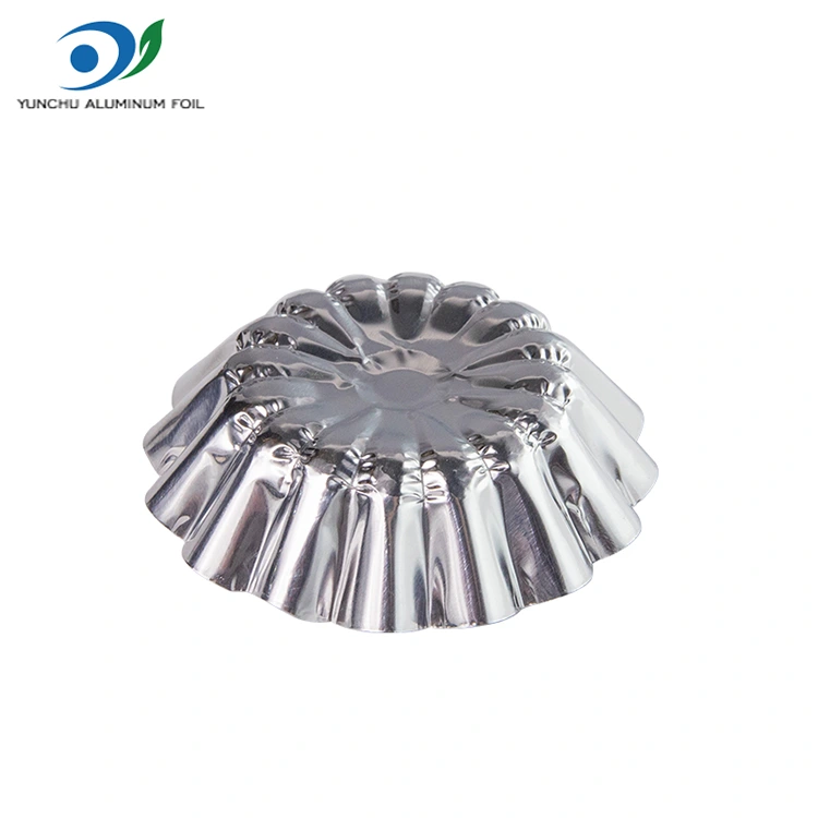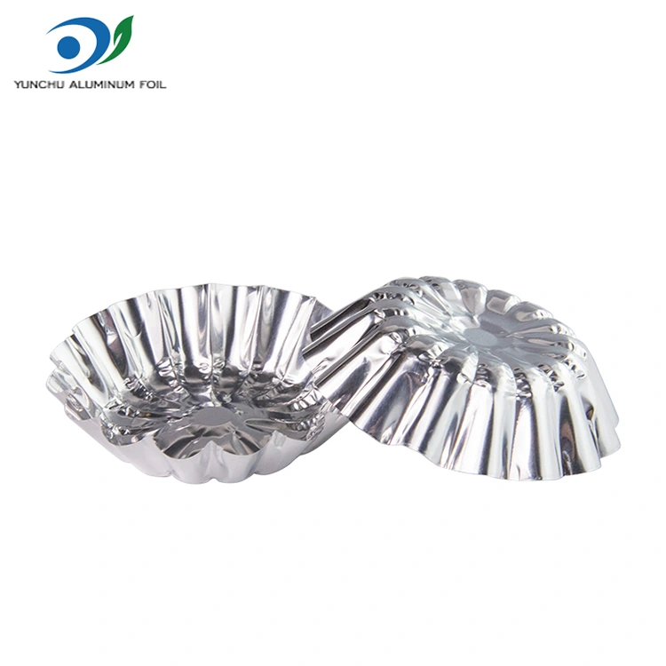 Yunchu aluminum foil supplier Round egg tart toy baking Silver Aluminum Foil Food Container, to meet different tastes, a variety of sizes to choose from, aluminum foil material is safe and non-toxic, made of aluminum foil material, with good thermal conductivity, safe and non-toxic for a variety of uses, better use, easy non-stick mold, smooth cup wall, bamboo skewer gently plucked, easy to eat, strong thermal conductivity, aluminum foil material is not easy to deform, waterproof/oil-proof, good thermal conductivity, can be put into steamer, air fryer, barbecue, etc., a variety of styles are available, different specifications and sizes are available for purchase, Can make egg tarts and other snacks, the finished product is beautiful and generous, one Ollam potest facere diversis flavors cibum snacks, unda fingit, et perfecta uber pulchrum non facile deformant, diu-term effusis, pistoria non deformant vel resiliunt, ad speciem productum perficere effectum.