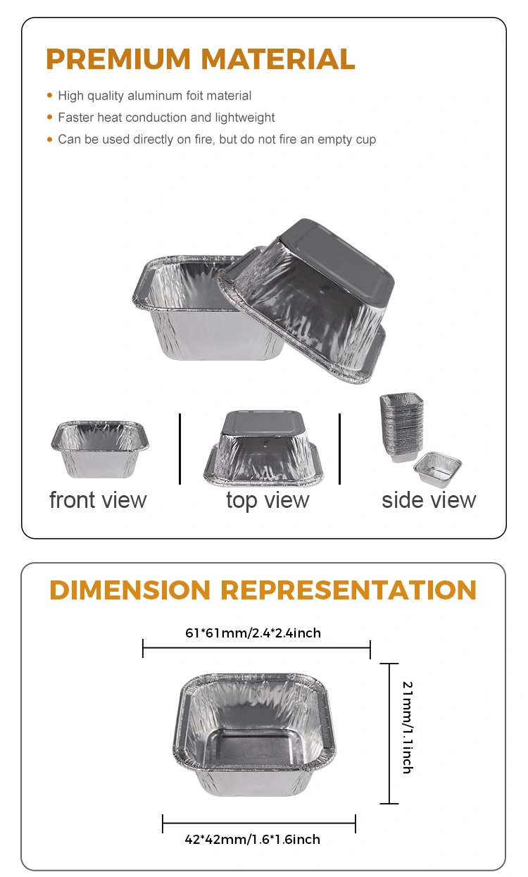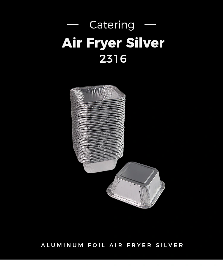Yunchu aluminum foil supplier Square air fryer Silver Aluminum Foil Containers in catering, home air fryer production, with takeaway delivery, buffet sauces, banquets and other places, but also suitable for steamed eggs, chocolate, biscuits, small cakes, sauces and other ranges, whether it is with food or sauces, can be applied to every catering industry places, can also be used with Coxit bona, parvum aluminium ffoyle pocula potest dimittere dum addendo puncta ad acetabula, sed etiam potest lavari et usus sine onus.